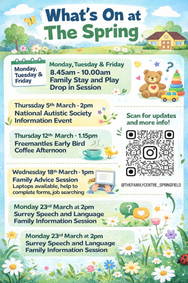 At Springfield Primary School, we are proud to offer The Spring Family Centre — a dedicated space where families, pupils, and our pastoral team can work together in a safe, supportive environment. The Spring Family Centre is at the heart of our school's commitment to working with families to promote wellbeing, attendance, positive behaviour, and safeguarding. Our team offers a warm and confidential setting where parents and carers can access a wide range of support services.